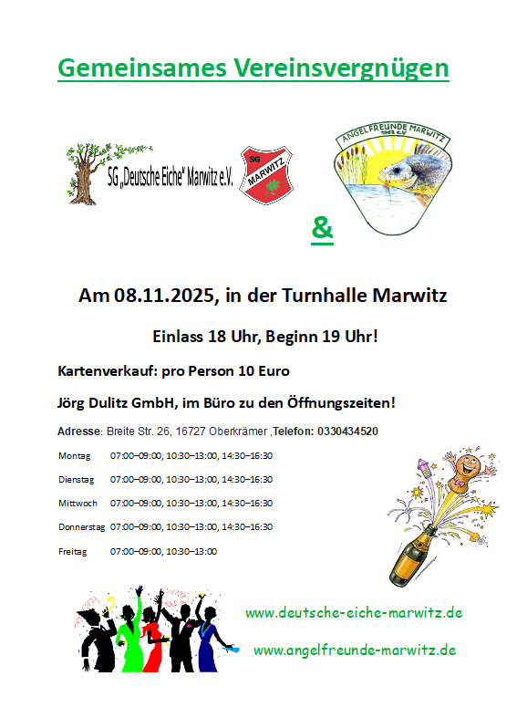 Angelfreunde Marwitz 1962 e.V. verbindet Angelbegeisterte, die gemeinsam ihre Leidenschaft leben und regelmäßig Veranstaltungen zur Förderung der Gemeinschaft organisieren.